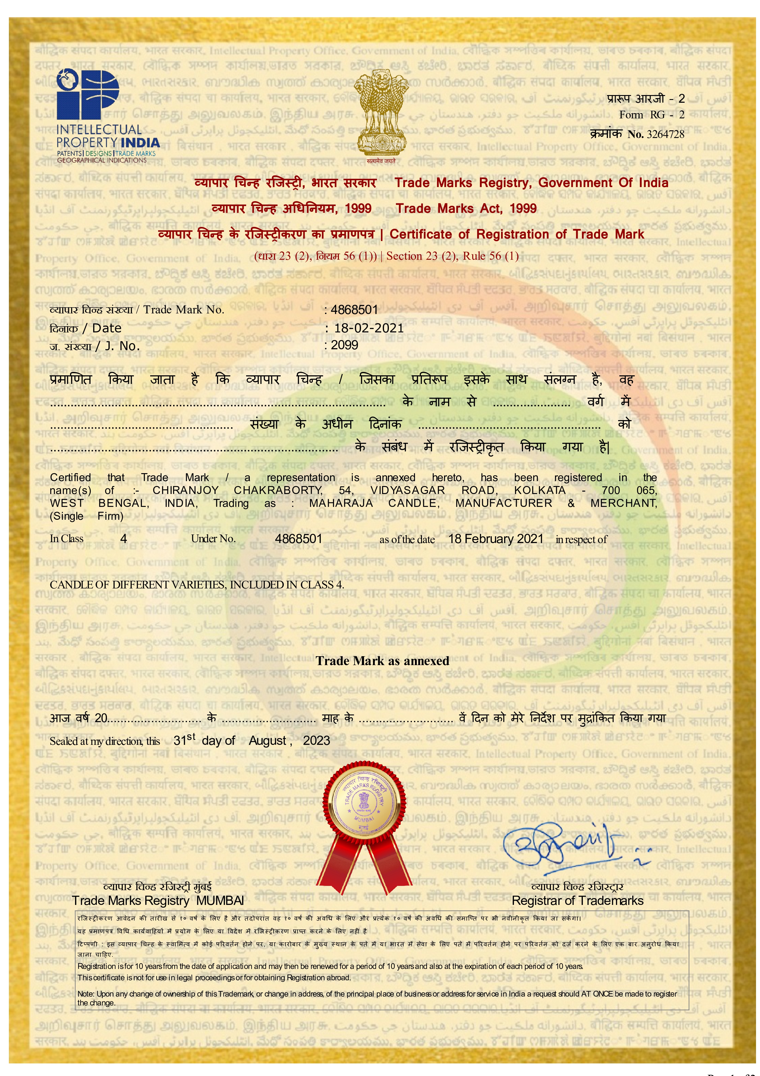 Maharaja Candle, a deeply trusted name in the candle industry, not only for its Quality over continuous and consistent five decades. We always consider the impact of pollution. Since candles are used everywhere in homes, we decided to manufacture odour less, pollution less and crystal candles.